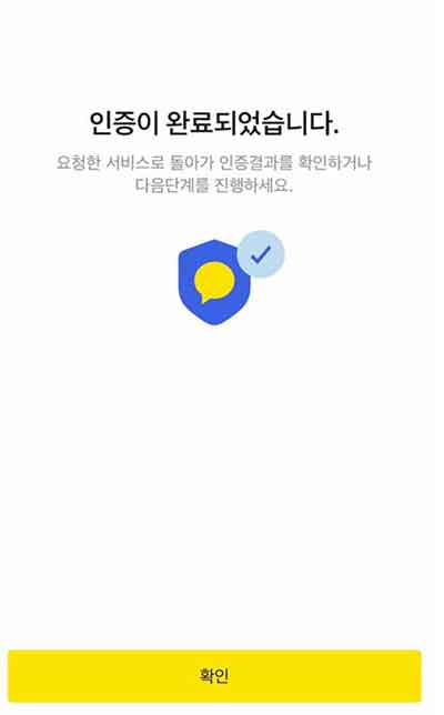 인증번호 입력창이 나오면, 인증번호를 얻기위해, 자신의 스마트폰에서 카카오톡을 실행하면됩니다. 카카오톡으로부터 받은 메세지에서 인증하기 버튼을 선택합니다.